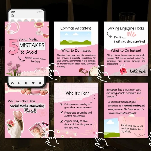 • 100 fully editable Instagram carousel templates (pink aesthetic style)