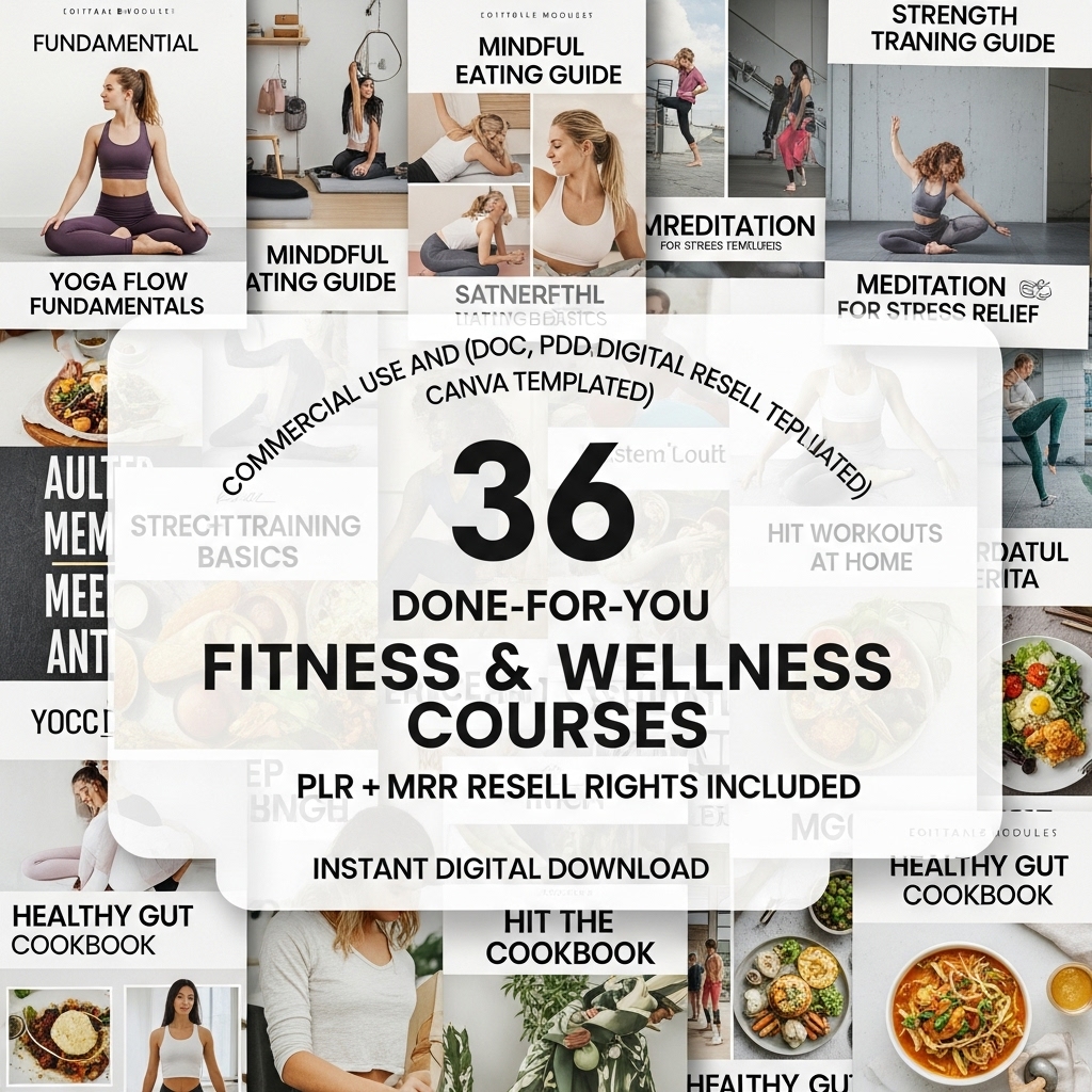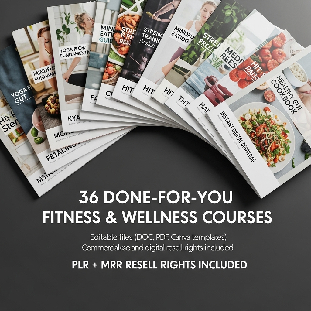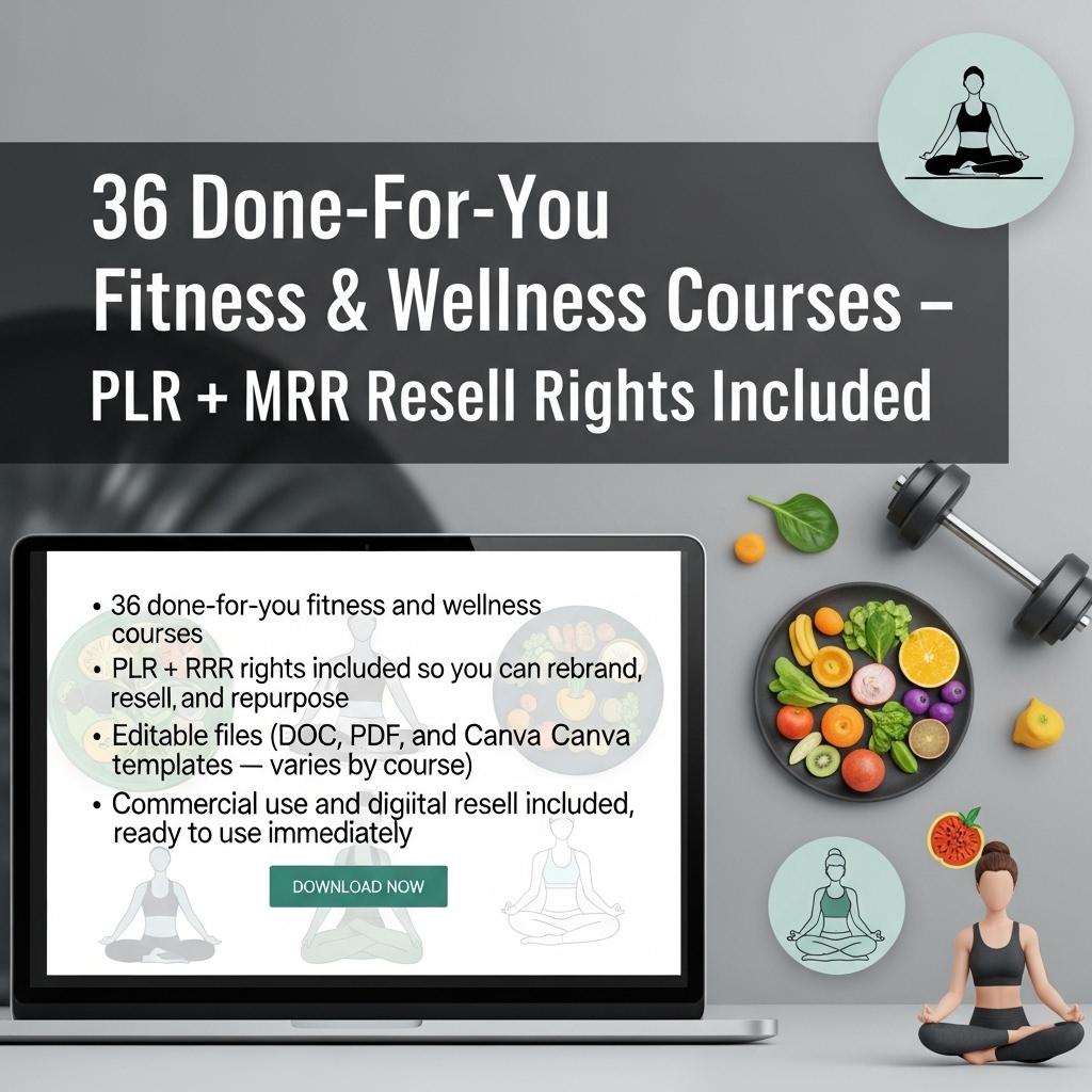 36-Done-For-You Fitness & Wellness Courses – PLR + MRR Resell Rights Included36-Done-For-You Fitness & Wellness Courses – PLR + MRR Resell Rights Included