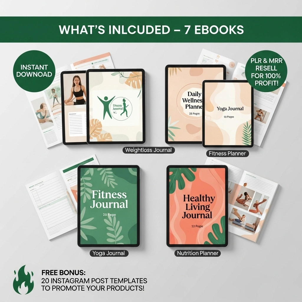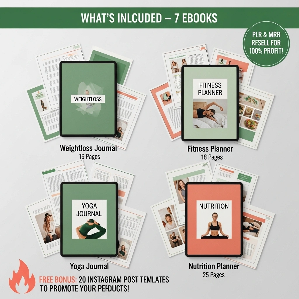 Get a powerful DFY (Done-for-You) digital product bundle of 7 editable fitness and wellness eBooks designed to help you plan workouts, organize meals, and track progress for a healthier lifestyle. Use it for your own routine, deliver it to clients, or rebrand and resell the bundle as your own digital product.